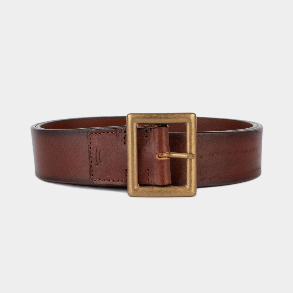 Ψηλόμεση δερμάτινη ζώνη με χρυσή αγκράφα